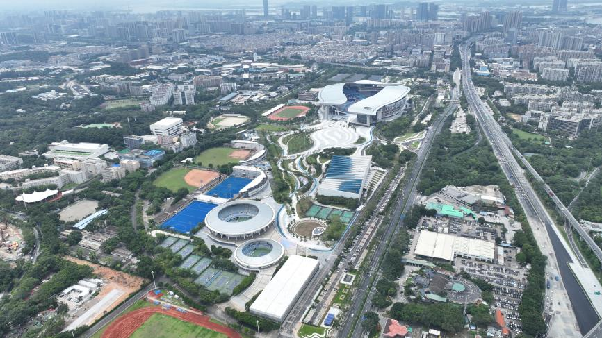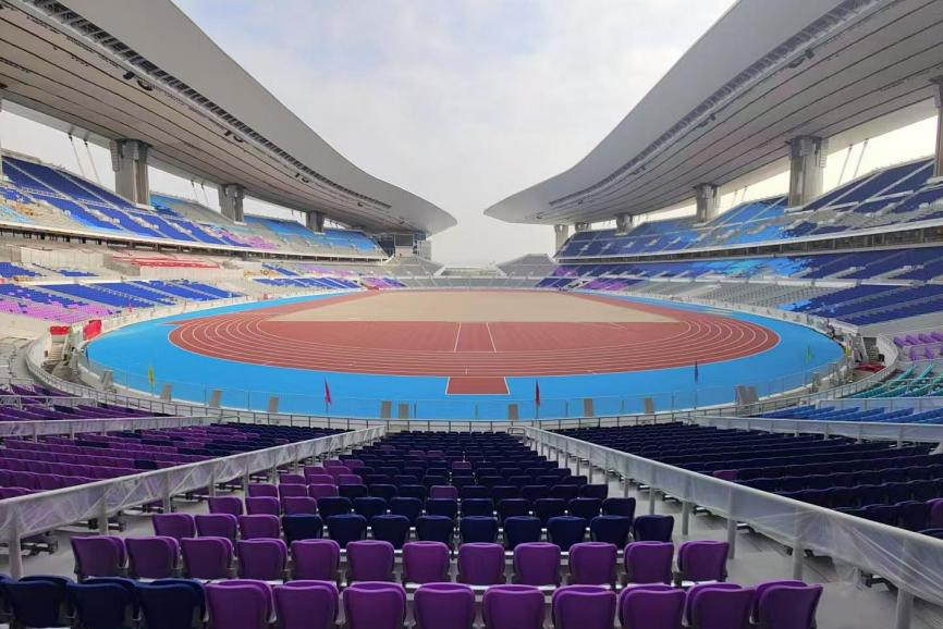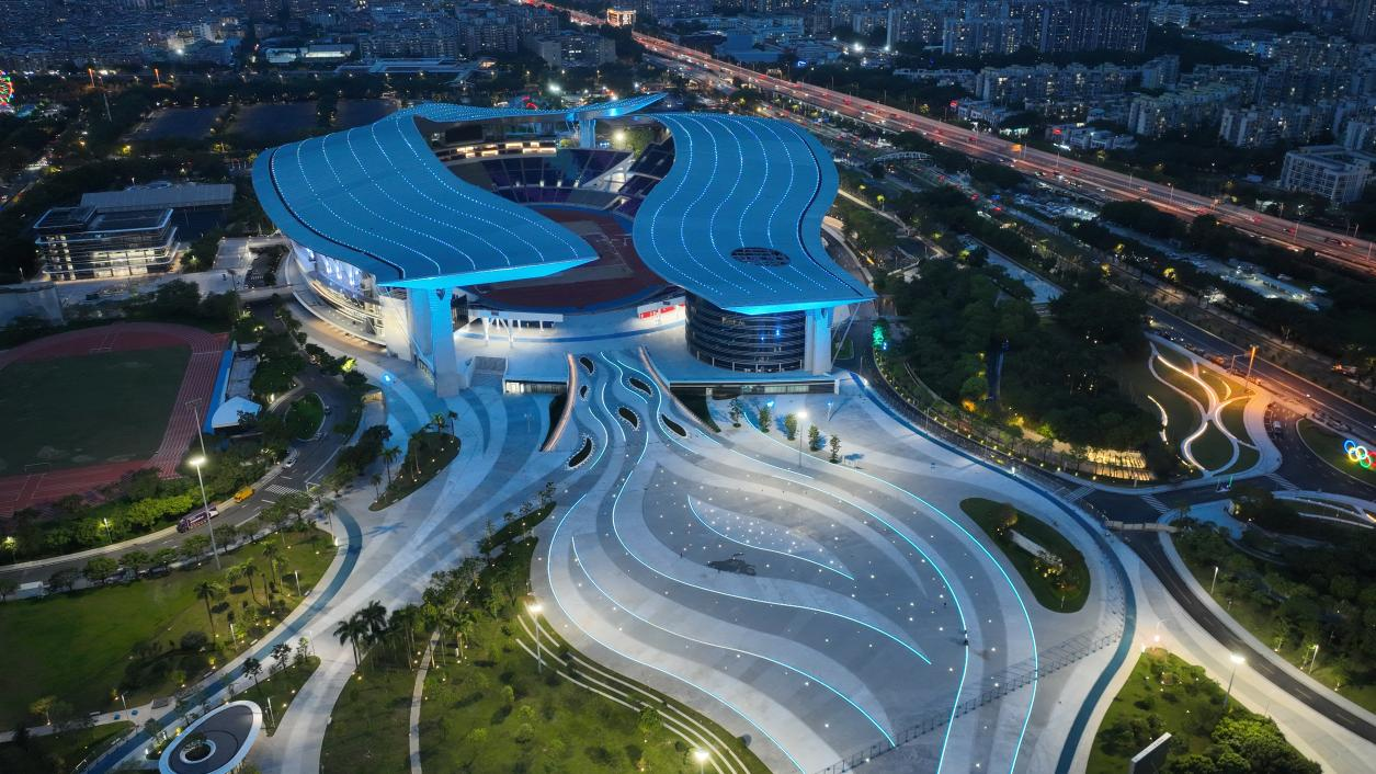 場館不雅眾座位在采用四種藍色的基本上,同時融進了廣東紅棉的白色、噴鼻港紫荊的紫色以及澳門蓮花的綠色三種主色彩。以此組成灣區環流的視覺感觸感染,塑造出豪情、活氣的粵港澳年夜灣區抽像。